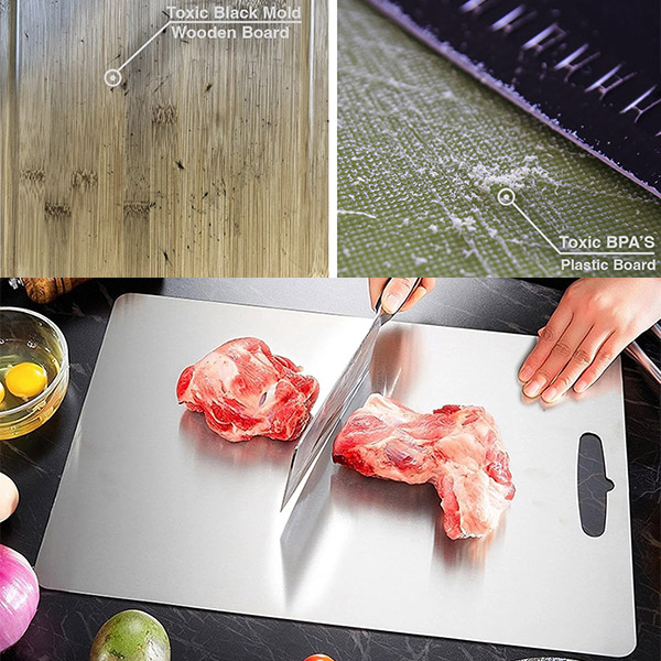 Every day, your cutting board comes into contact with your food. An old wooden board can harbor mold, and worn plastic boards can shed harmful shavings into your meals. Protect your family's health with the Yamato™ Titanium Cutting Board for a sustainable, chemical-free solution that guarantees pure cleanliness without mold or toxins.